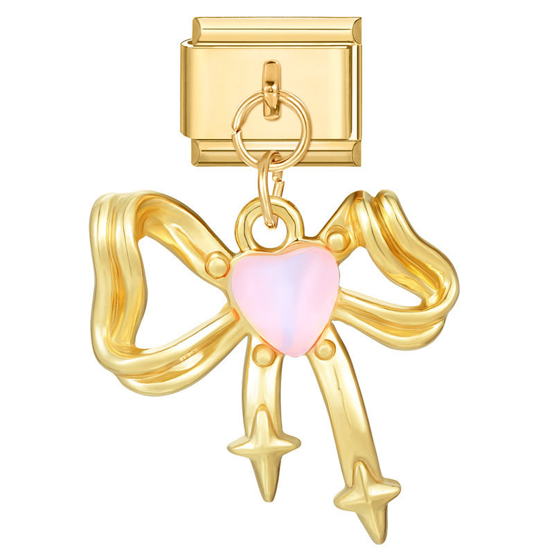 - Gold base-pink bow