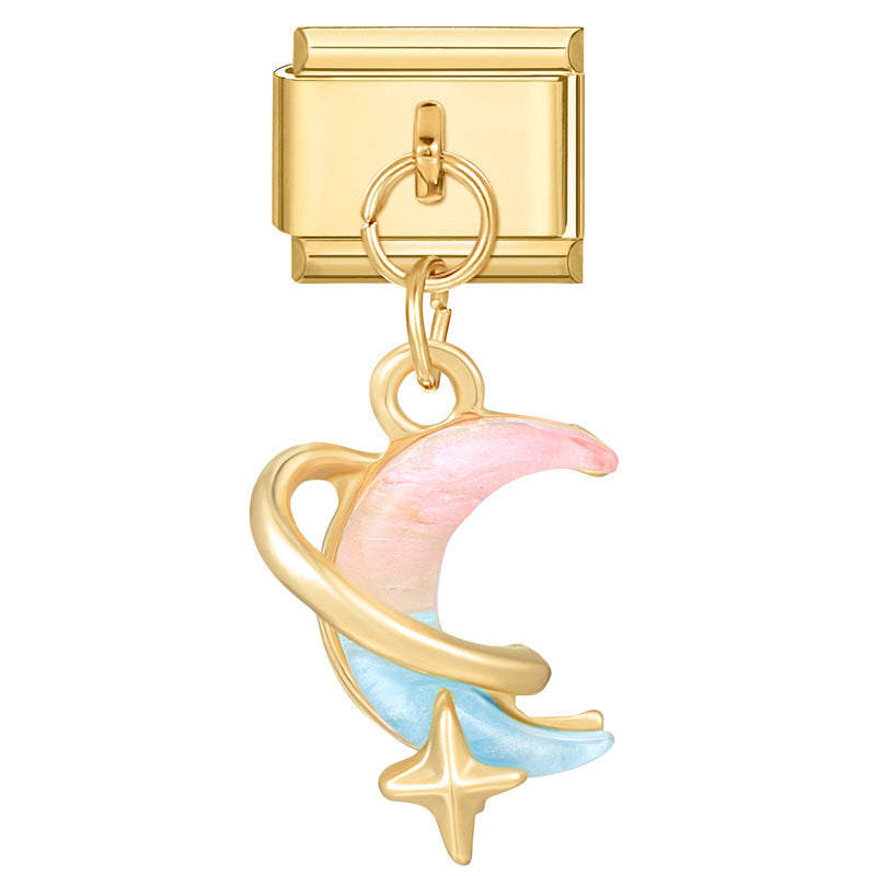- Gold base-pink and green moon