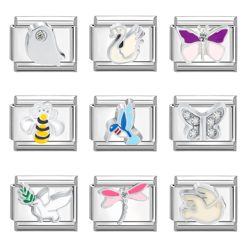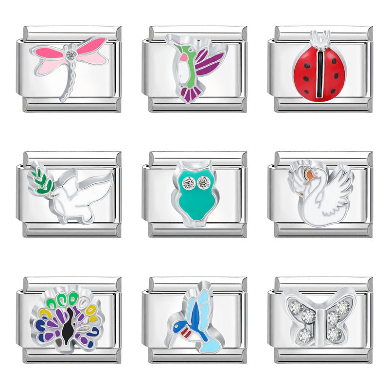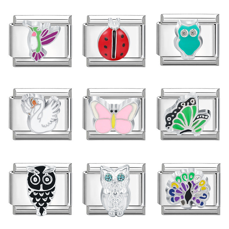 Wholesale Italian Charm Bracelet 9mm DIY Splicing Insect Series Stainless Steel Composable Bracelet