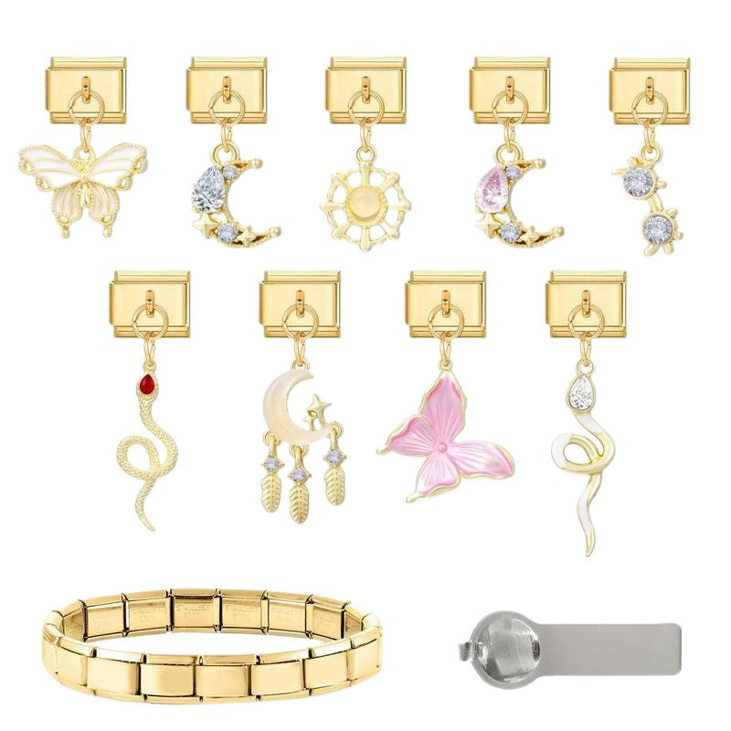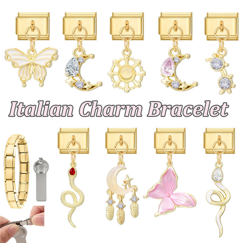 Wholesale Italian Charm Bracelet 9mm DIY Splicing Pink Series Gold Pendant Stainless Steel Composable Bracelet