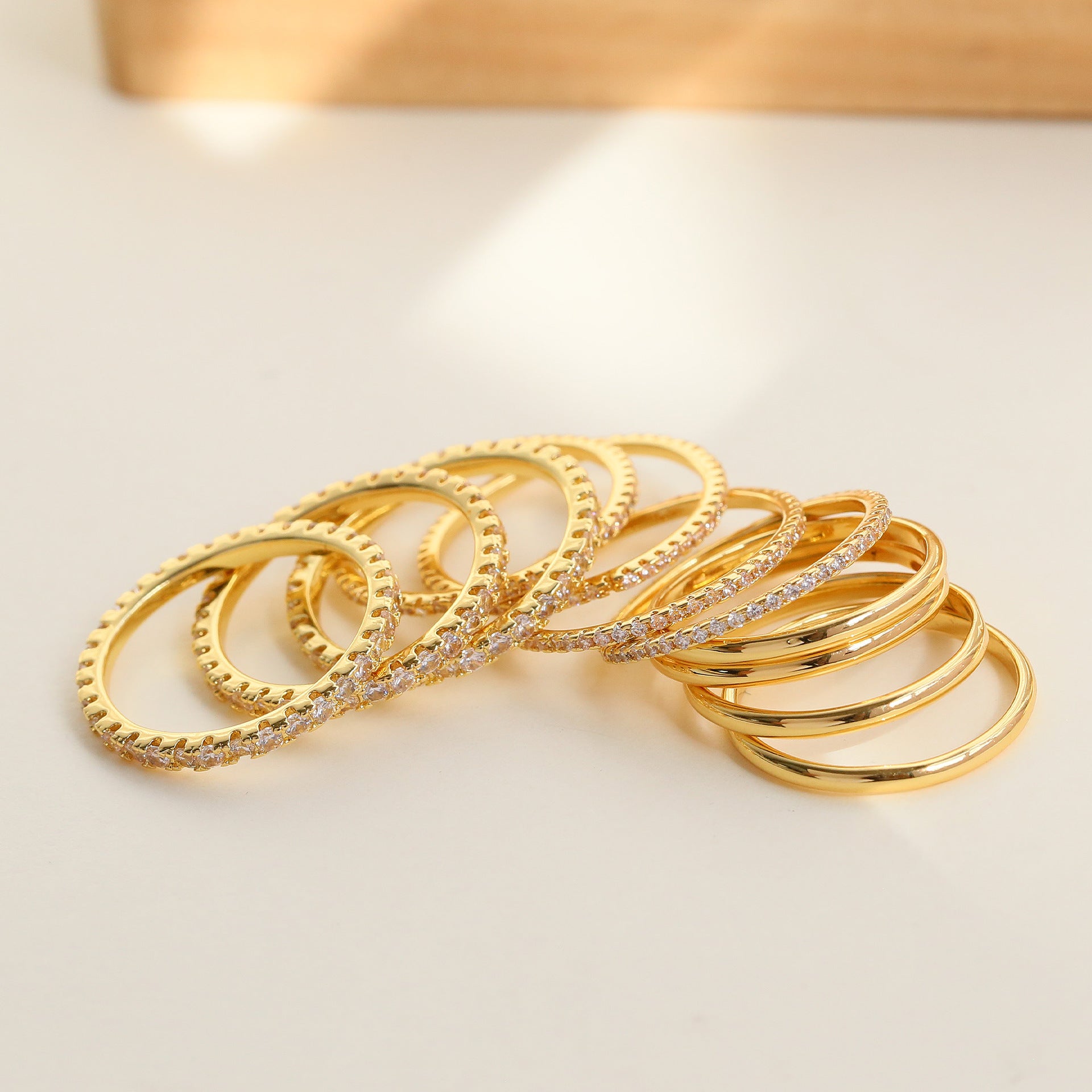 Wholesale gold and silver brass full diamond smooth simple personality ring