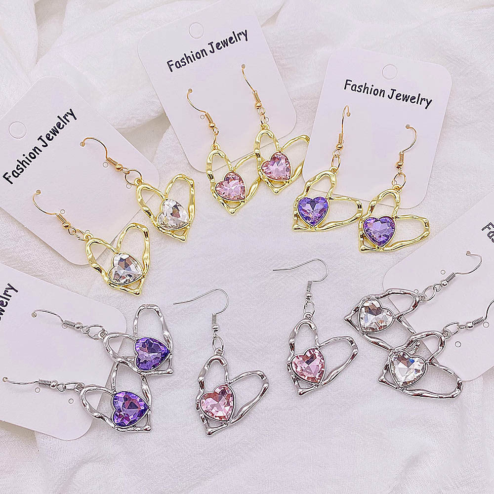 Wholesale Light Luxury Zircon Earrings Colorful Love Alloy Pendant Earrings