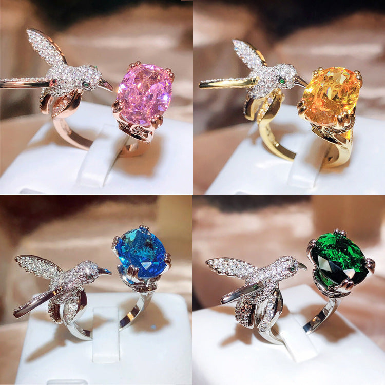 Wholesale Luxury Aquamarine Hummingbird Adjustable Ring