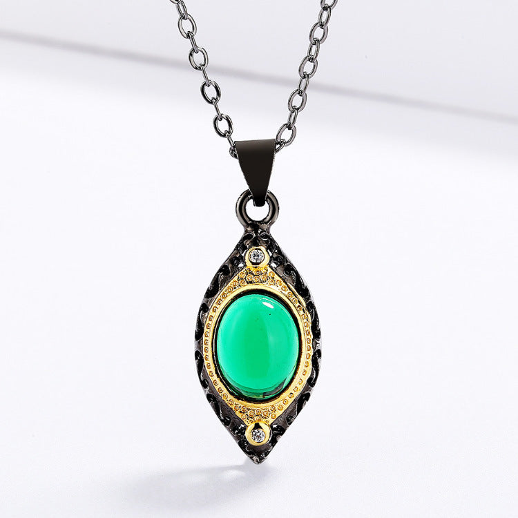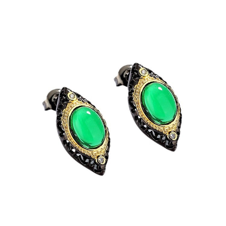 Wholesale black gold three-piece retro Emerald Gold plated personalized ring necklace earrings