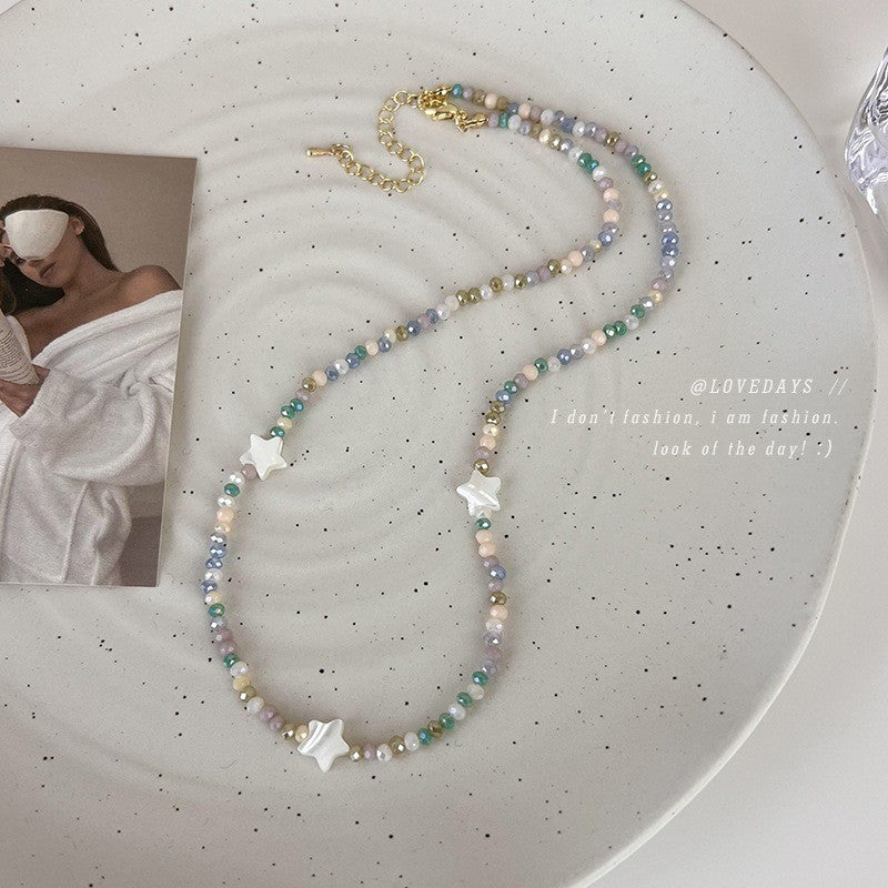 Wholesale Color Beaded Five-pointed Star Necklace