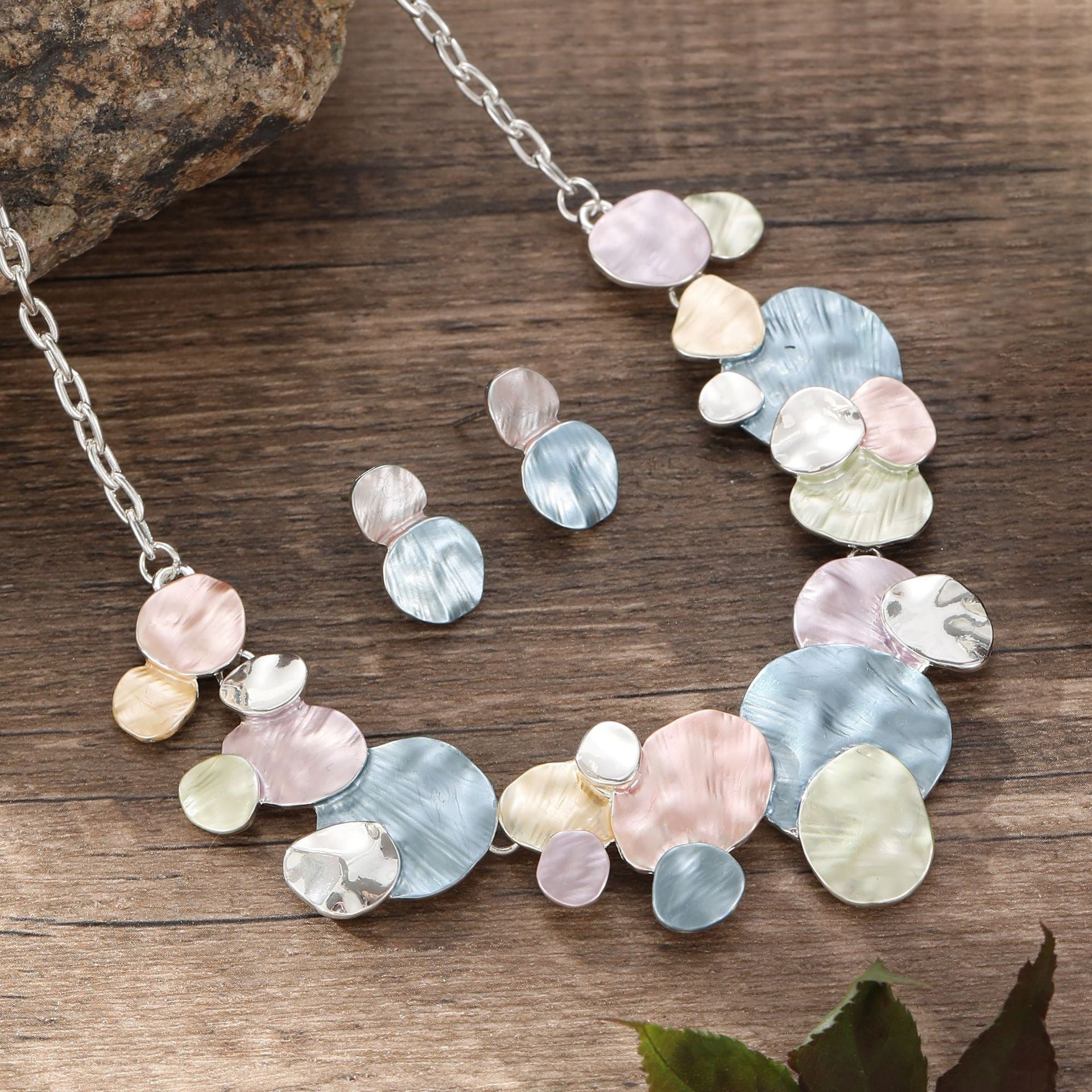 - Spring geometric stud earrings necklace set-silver