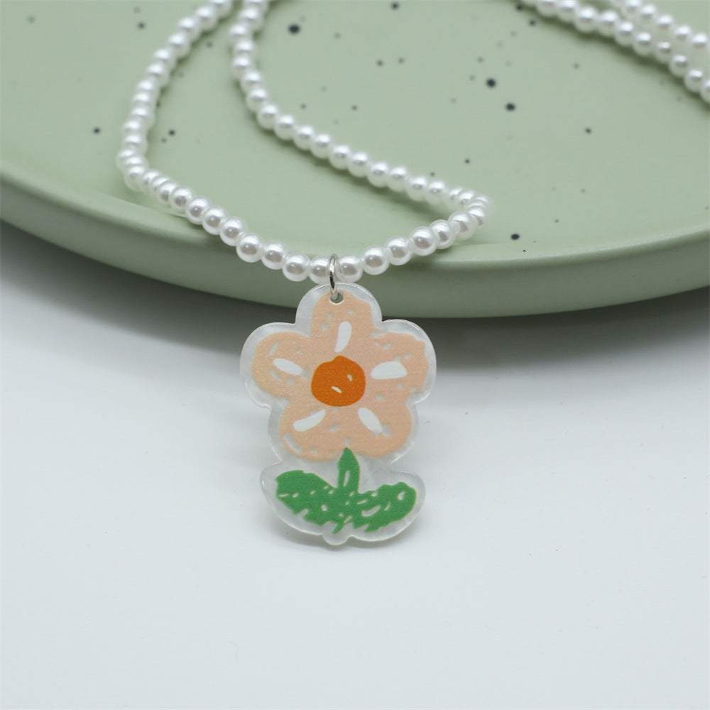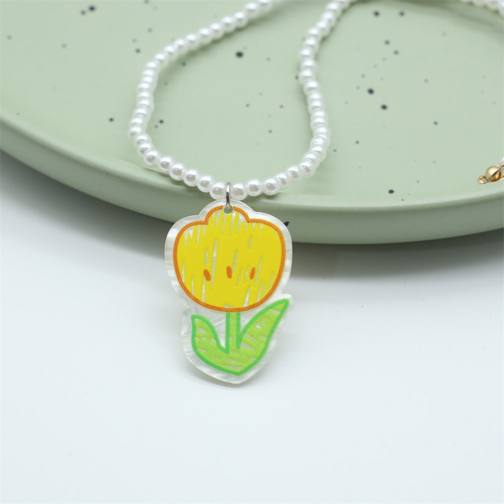 Wholesale Colorful Acrylic Flower Smiley Tulip Pendant Pearl Beaded Necklace