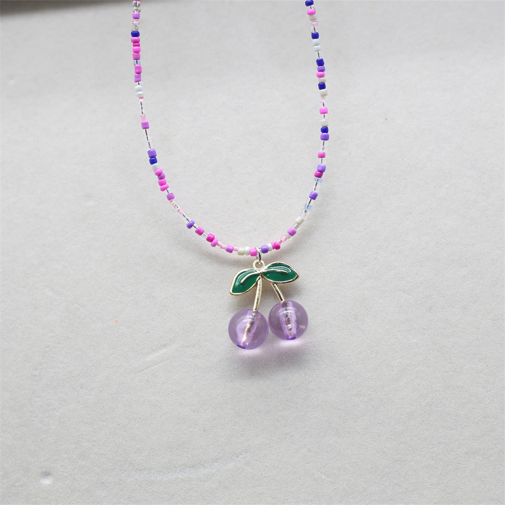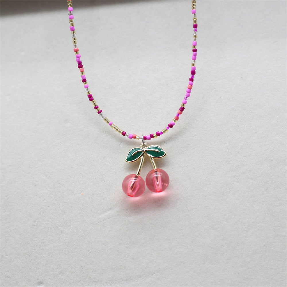 Wholesale Colorful Beaded Cherry Pendant Necklace