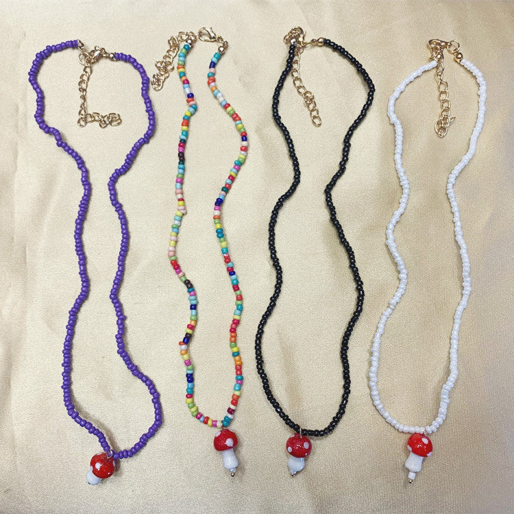 Wholesale creative handmade rice beads cute mushroom necklace