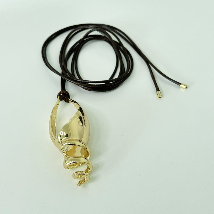 Wholesale Light Luxury Metal Conch Pendant Leather Rope Lace Necklace
