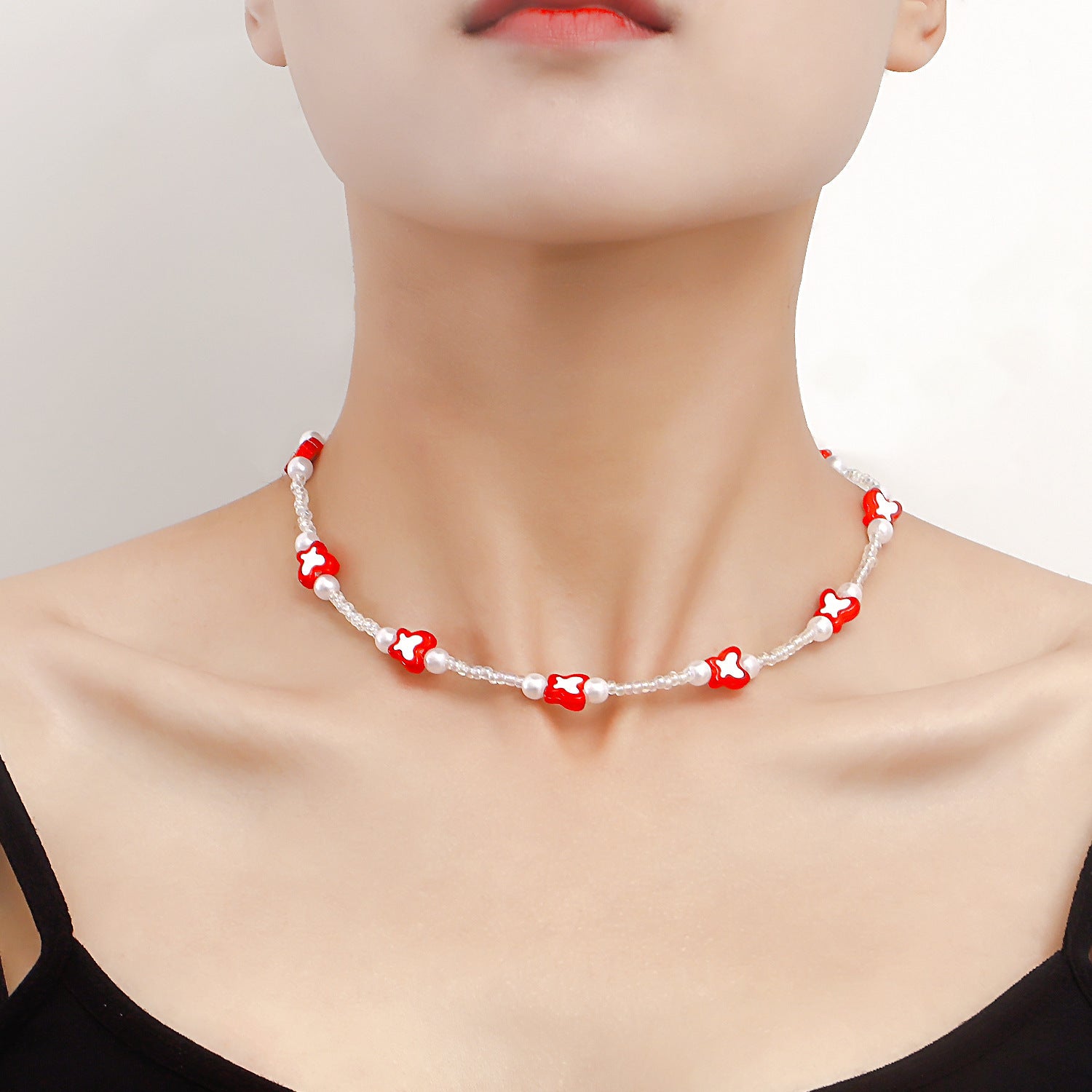 Wholesale Mini Color Butterfly Clear-cut Rice Bead Necklaces