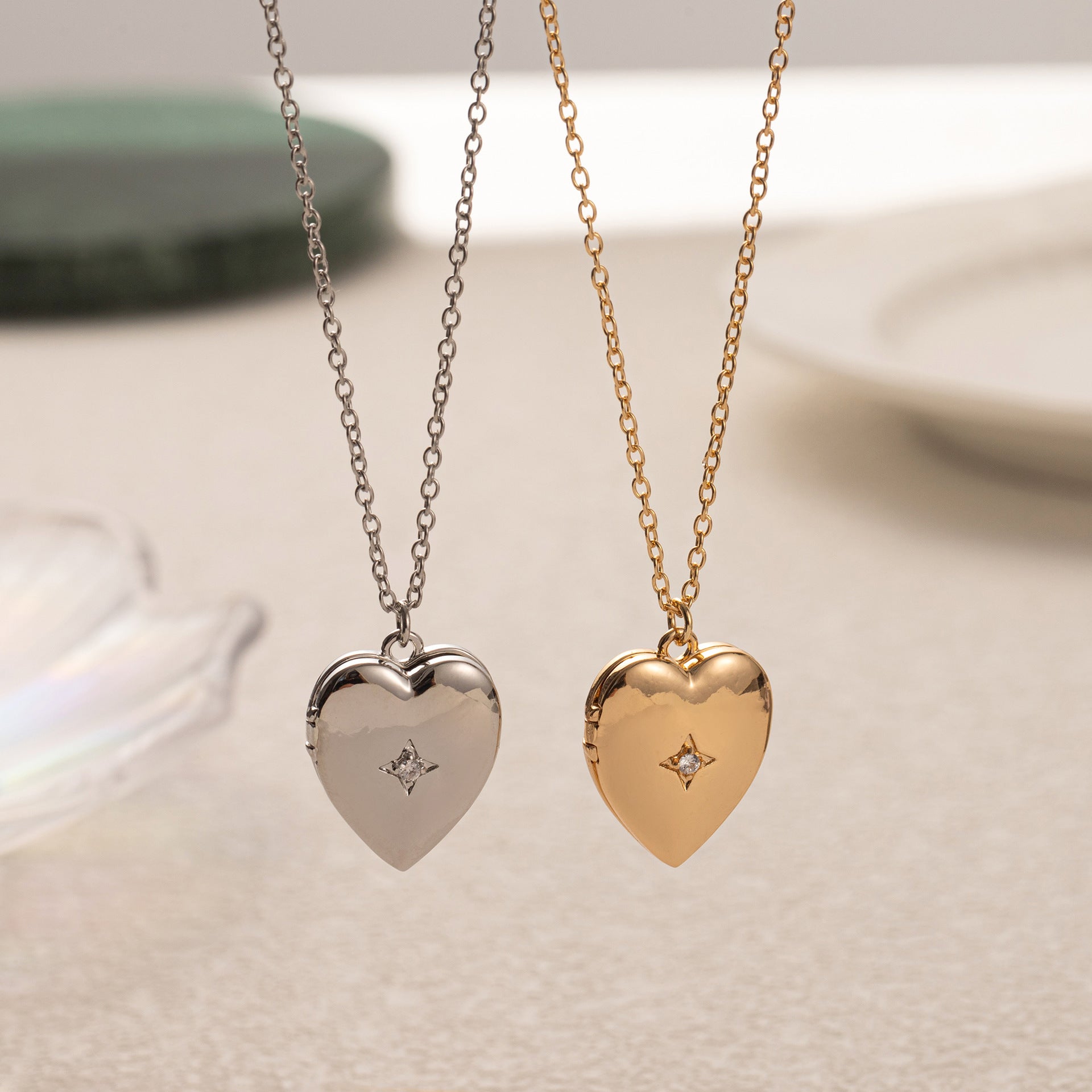 Wholesale Open and close necklace can open the album diamond star heart necklace