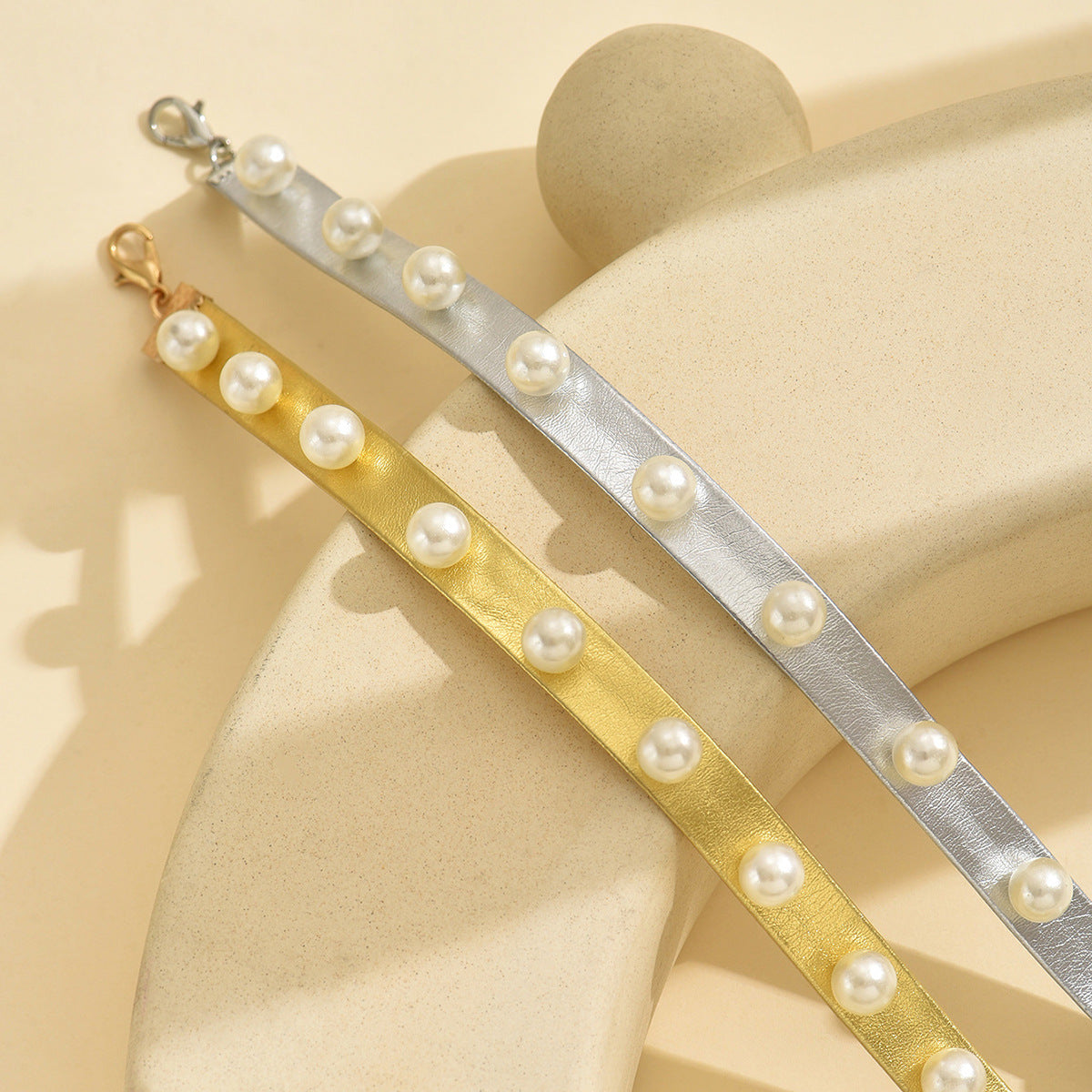 - N-321 Leather Imitation Pearl Necklace