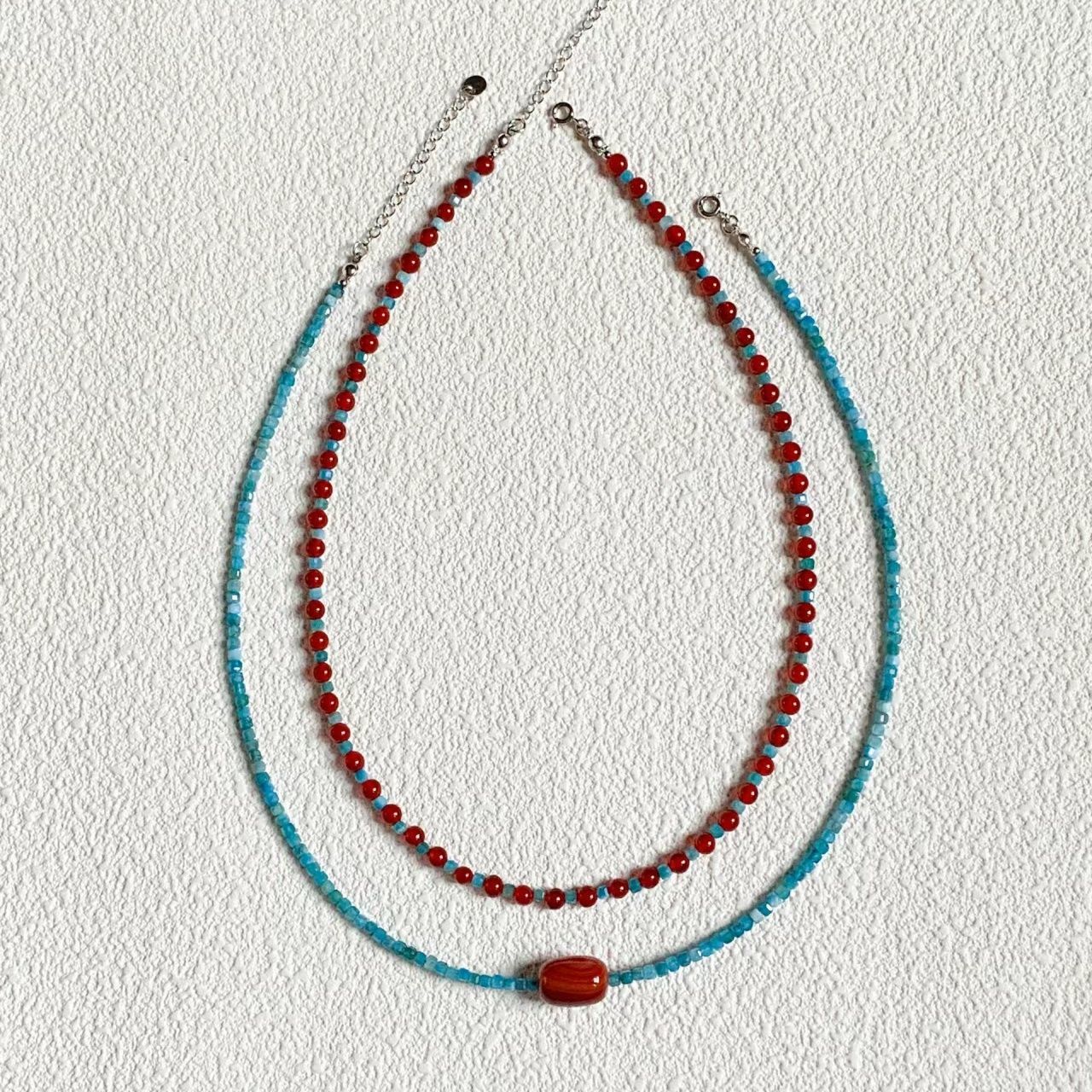Wholesale Retro Clavicle Chain Red and Blue Beaded Necklace