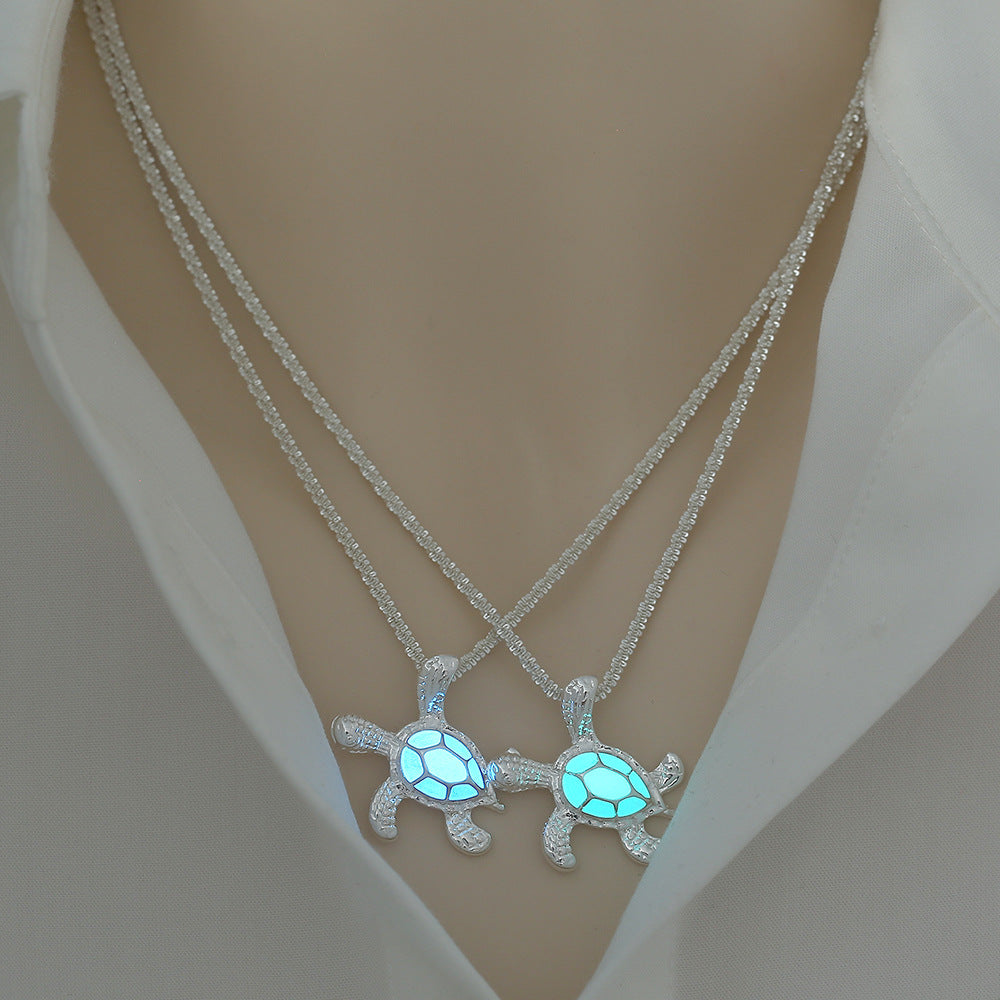 Wholesale Silver ocean turtle oil drop luminous glowing shiny cauliflower necklace