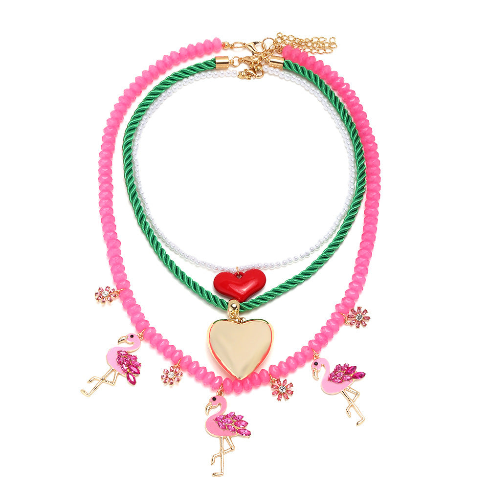 Wholesale Summer Light Luxury Style Oil Dripping Flamingo Heart Pendant Necklace