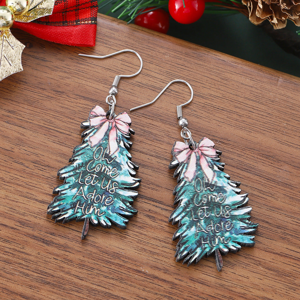 Wholesale Christmas bow Christmas tree pendant earrings wooden double-sided earrings