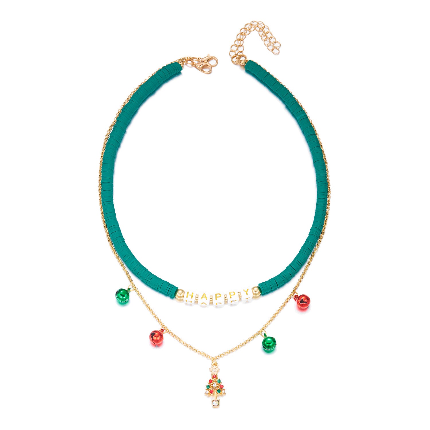Wholesale Christmas Tree Snowflake Polymer Clay Double Layer Necklace