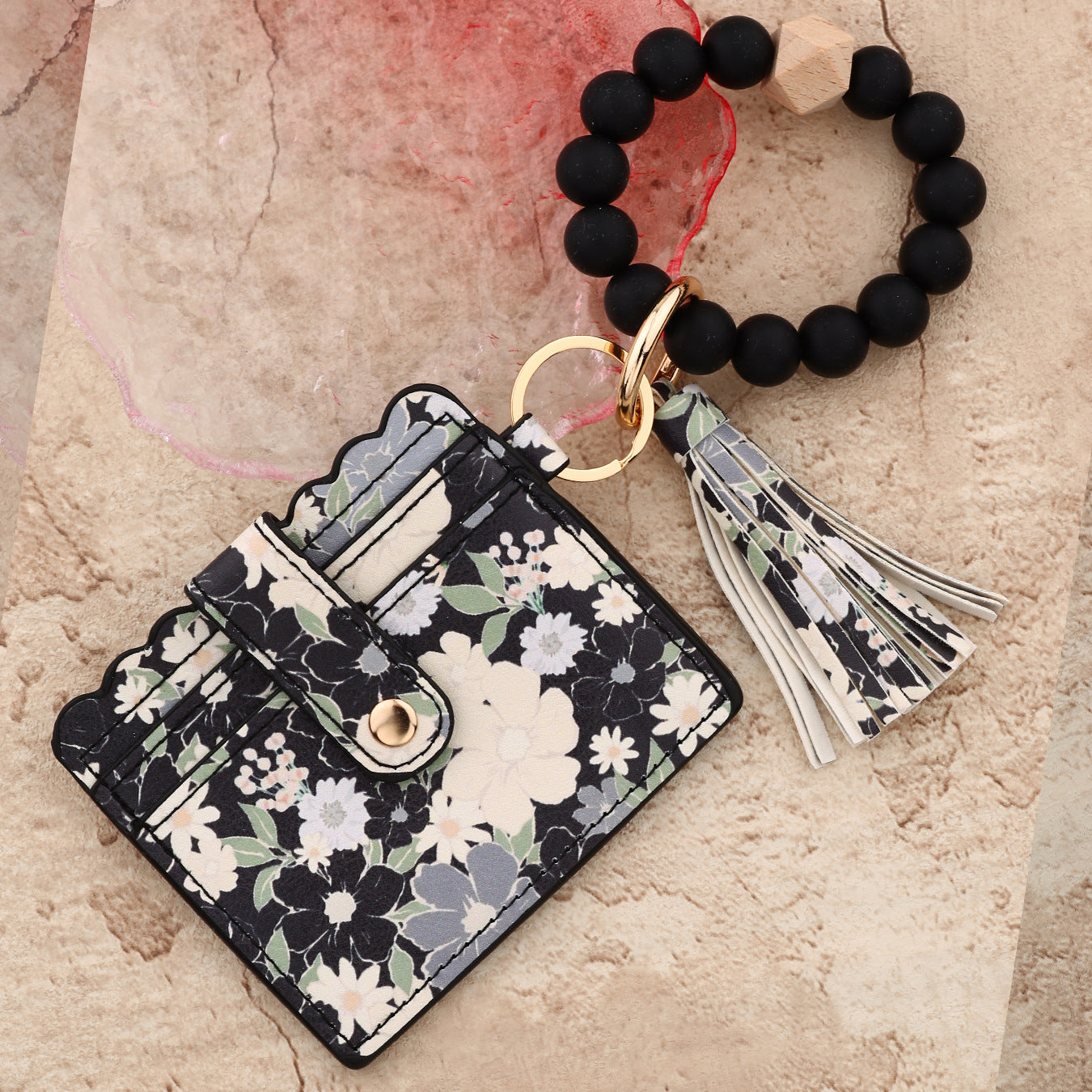 Wholesale silicone bead bracelet pink card holder Wristlet Keychain