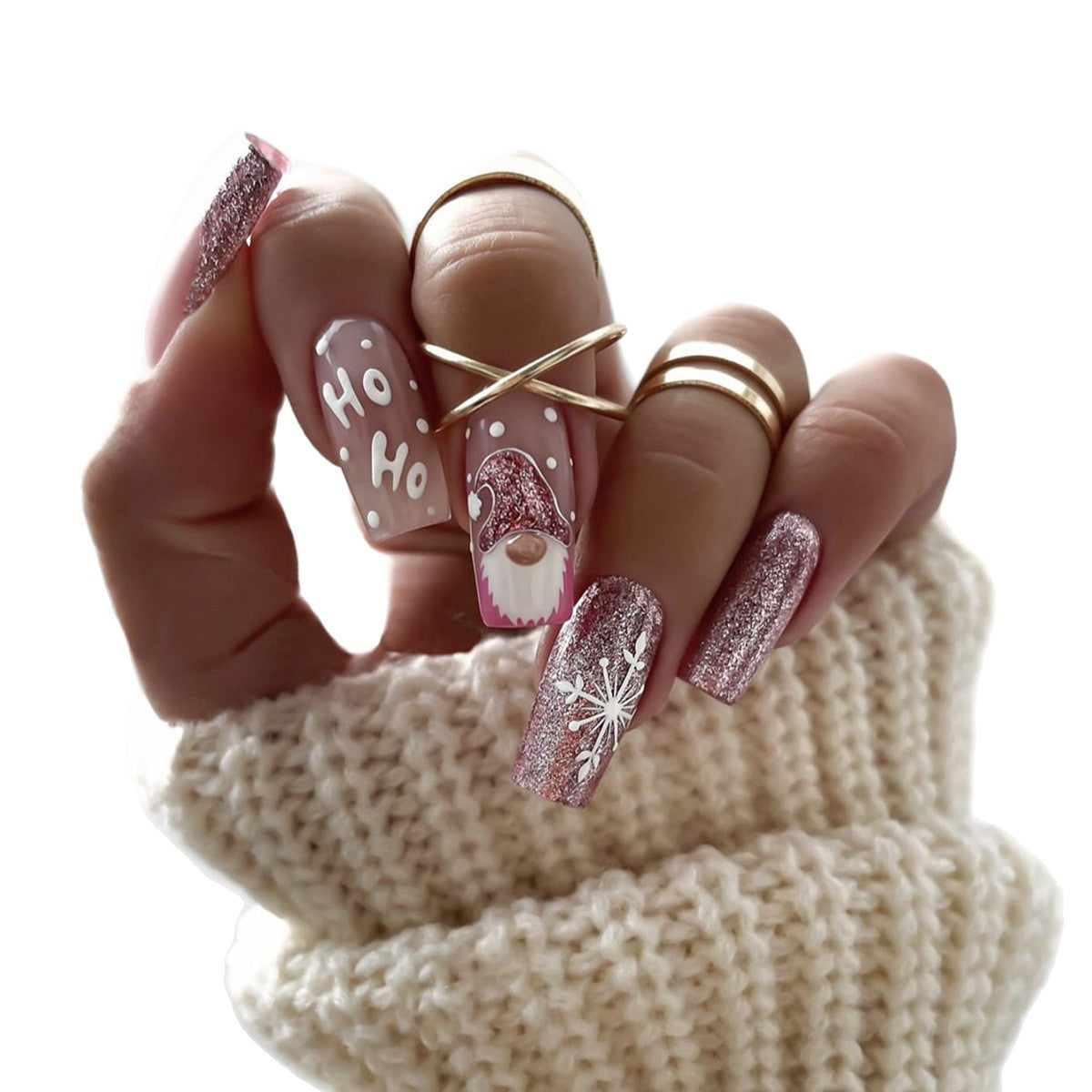 Wholesale 24 Pieces/ box Pink Glitter Santa Snowflake Nails Kits Nail Stickers