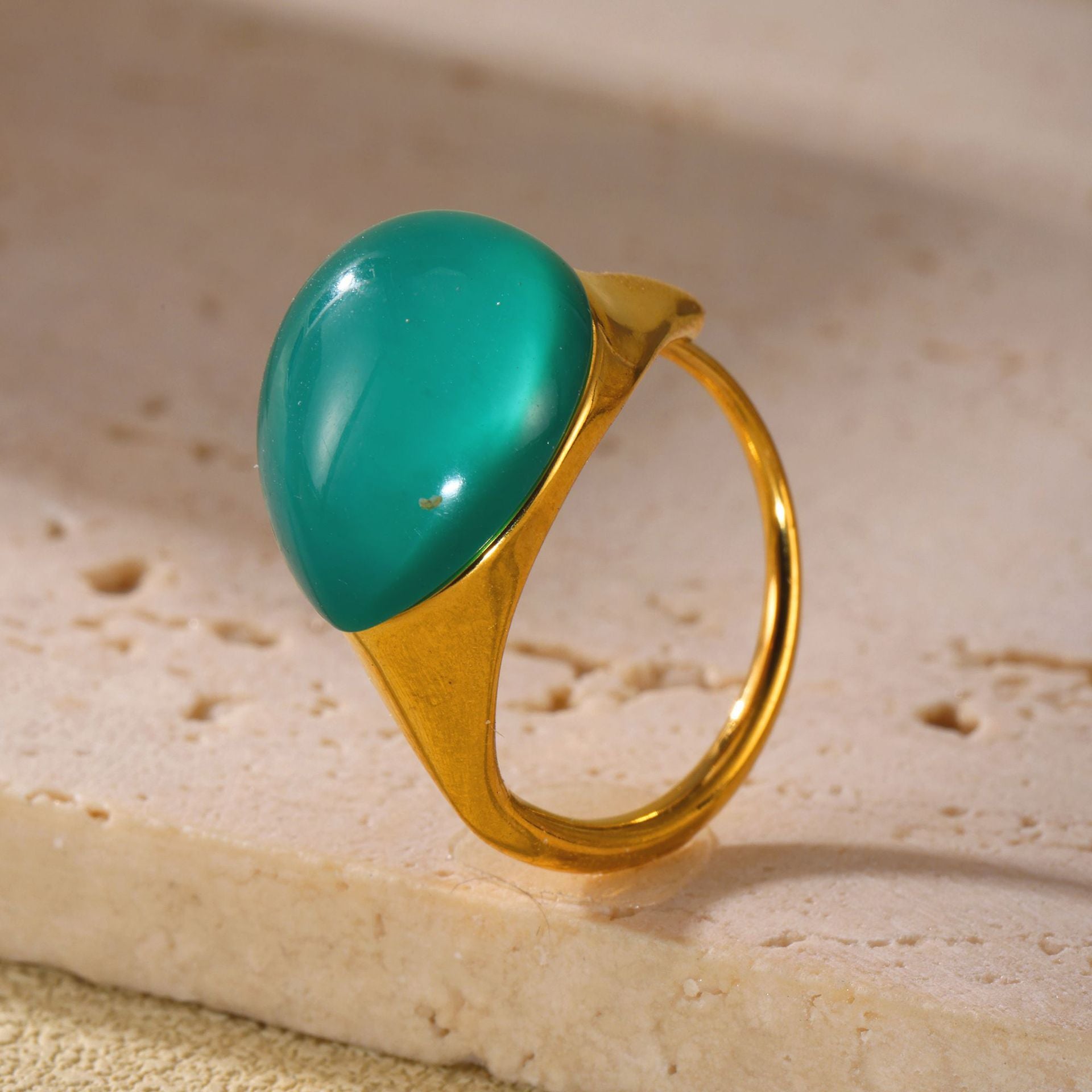 Wholesale multi-color water drop resin opening adjustable stainless steel ring