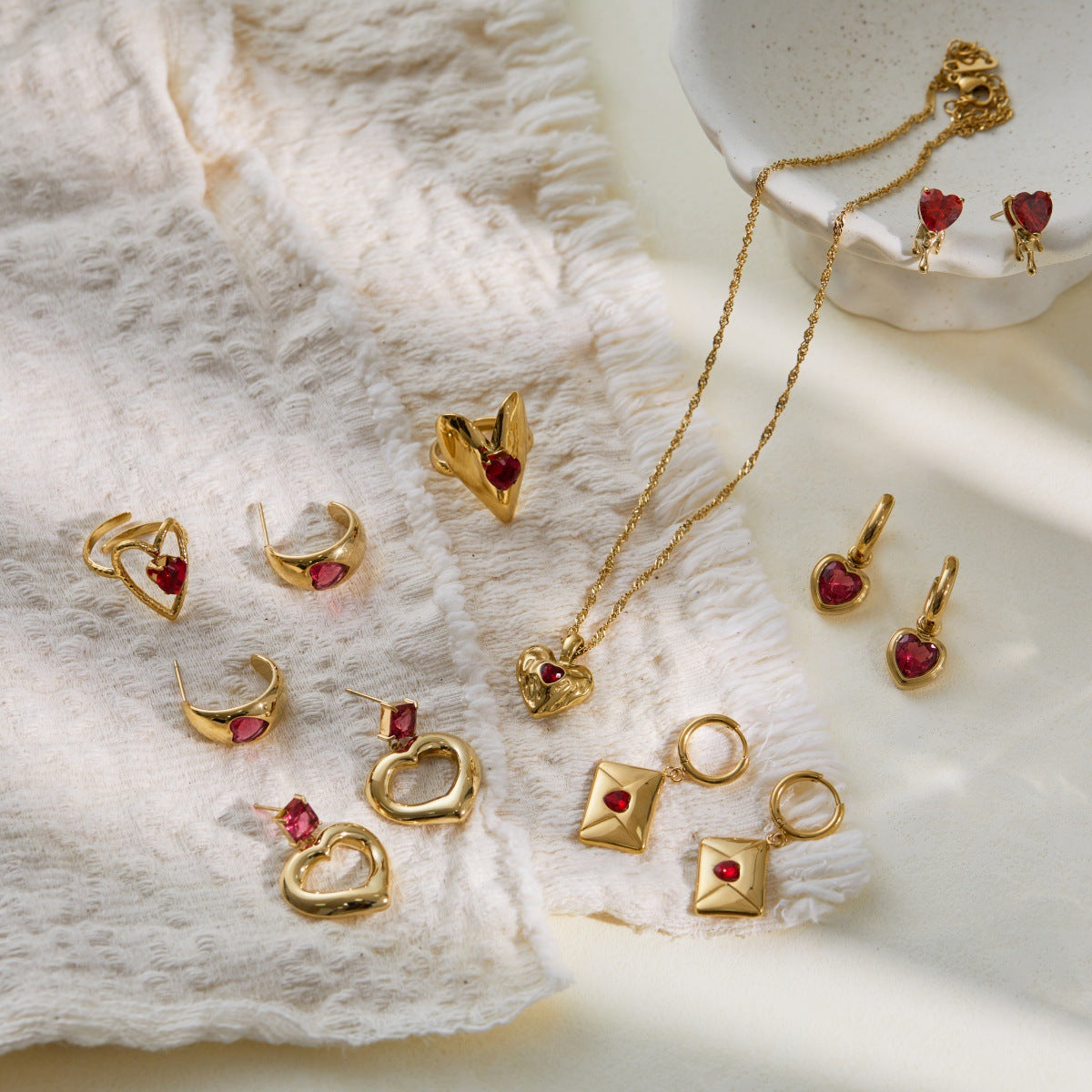 Wholesale Stainless steel heart-shaped zircon earrings and necklace