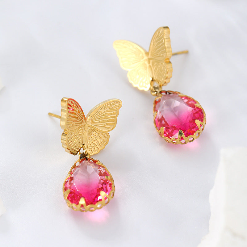 Wholesale Stainless Steel Three-Dimensional Butterfly Earrings