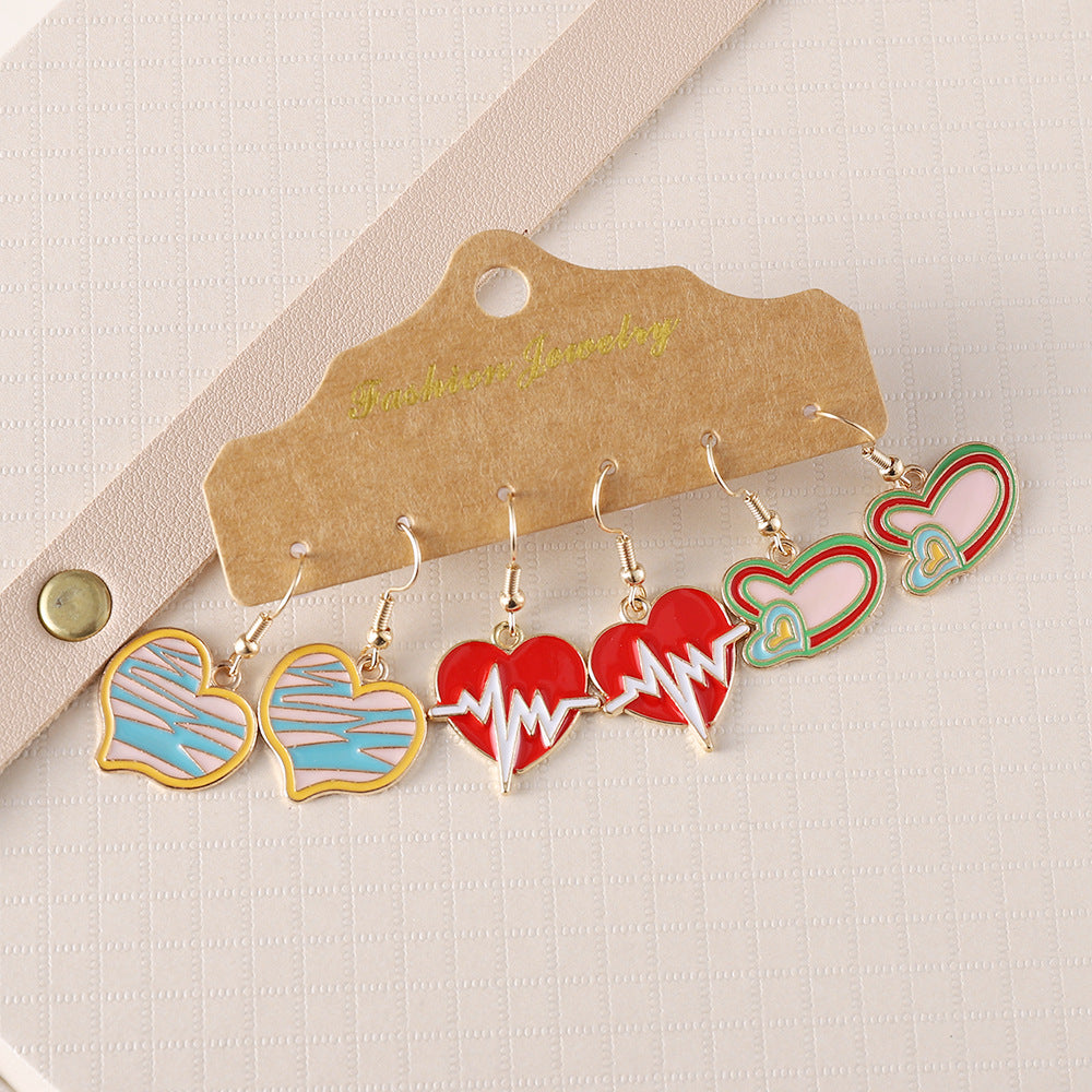 Wholesale Valentine' s Day Love Bear Rose Church Love Heartbeat Pendant Oil Dropping Earrings suit