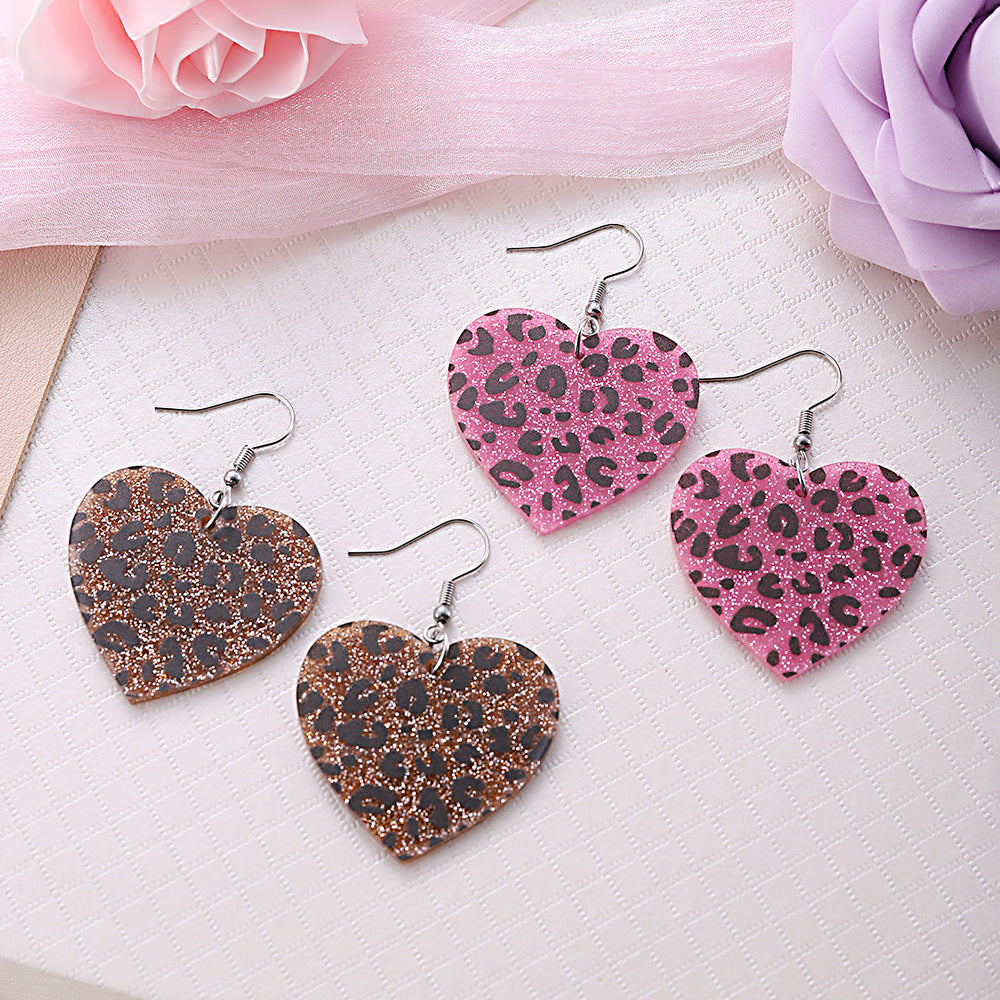Wholesale Valentine's Day Love Leopard Sequin Pendant Earrings