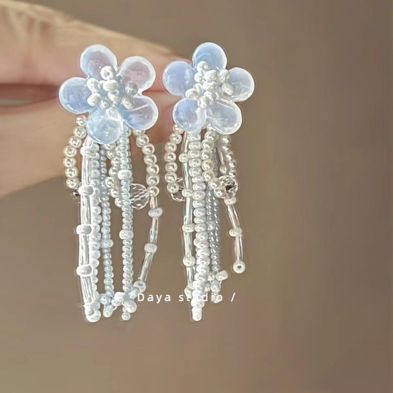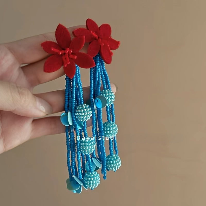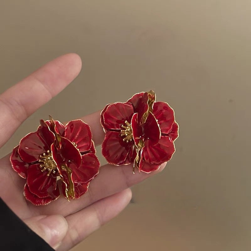 Wholesale Blue Retro Glaze Rose Flower Zircon Earrings