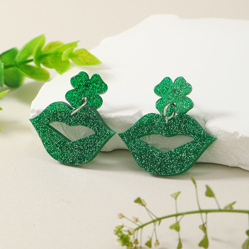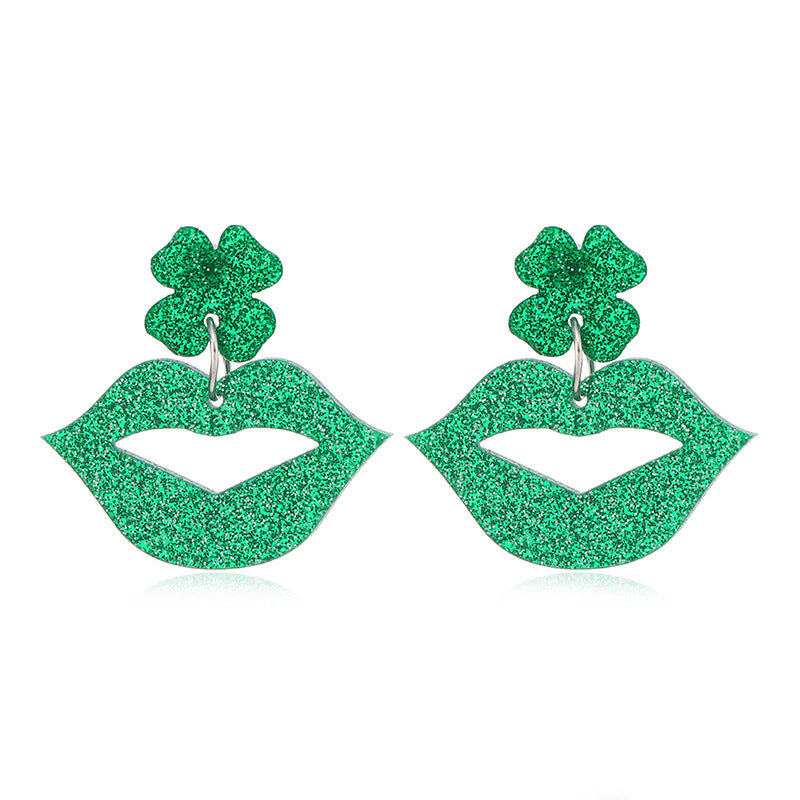 Wholesale St. Patrick's Day Green Hat Day Green Clover Lips Earrings