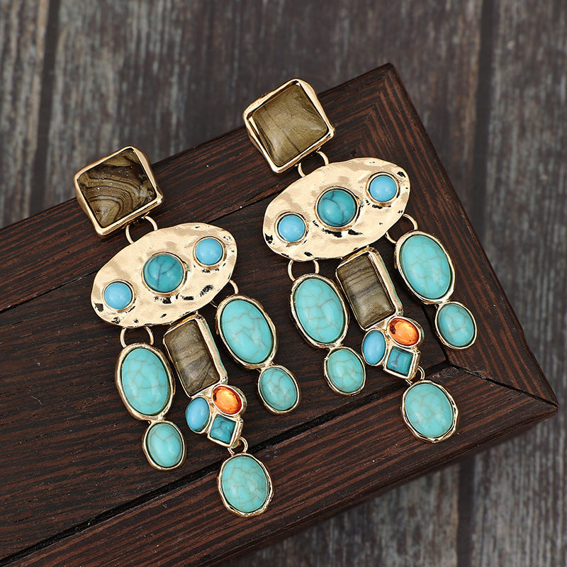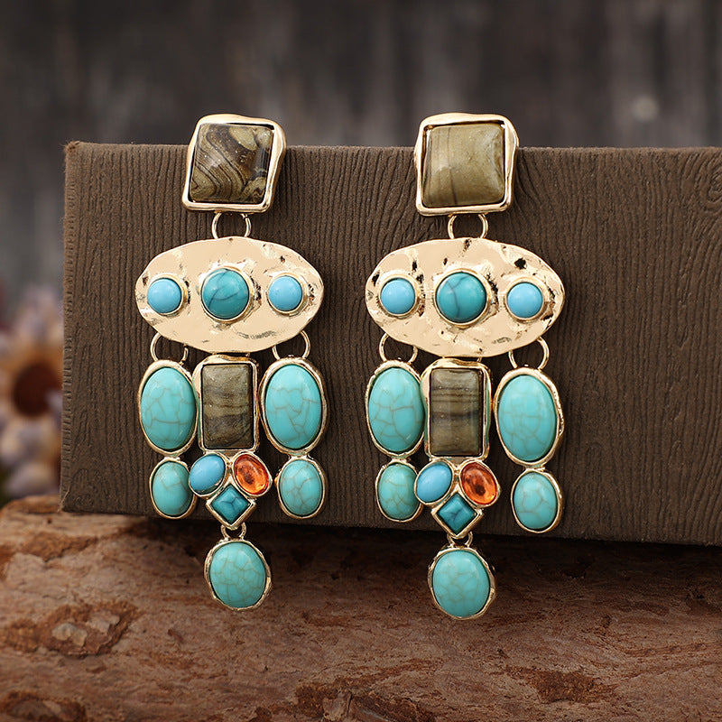 Wholesale Personality Ethnic Style Inlaid Turquoise Earrings Long Earrings