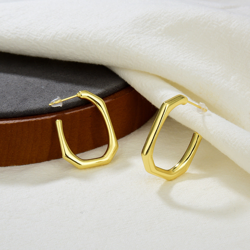 Wholesale plated 18K real gold color Copper solid medium rectangular bamboo earrings