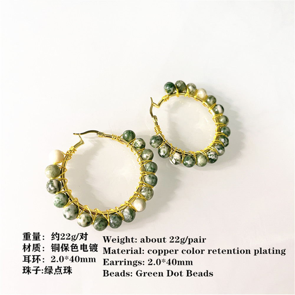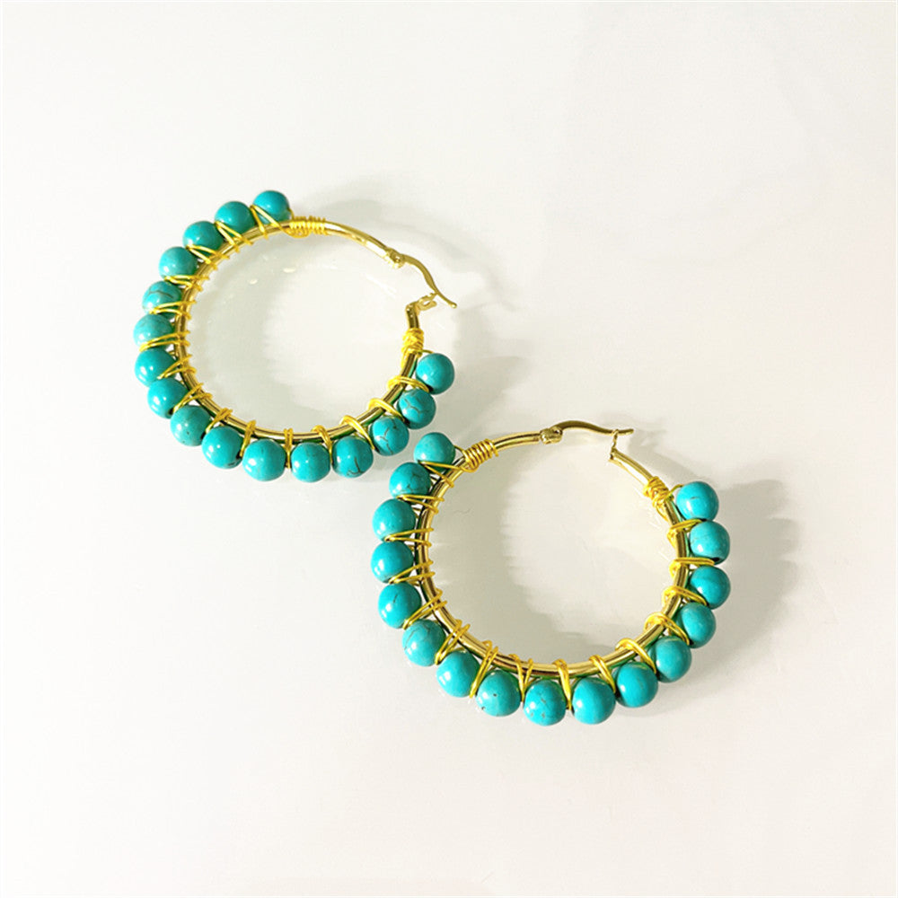 Wholesale Round Stone Volcanic Rock Synthetic White Turquoise Earrings
