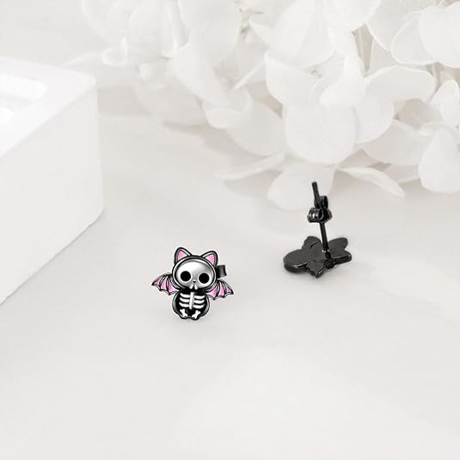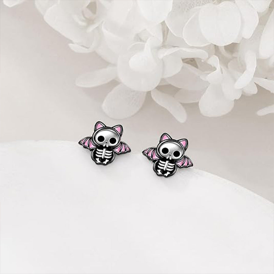 Wholesale Skull Bat Earrings Pink Halloween Drop Oil Earrings