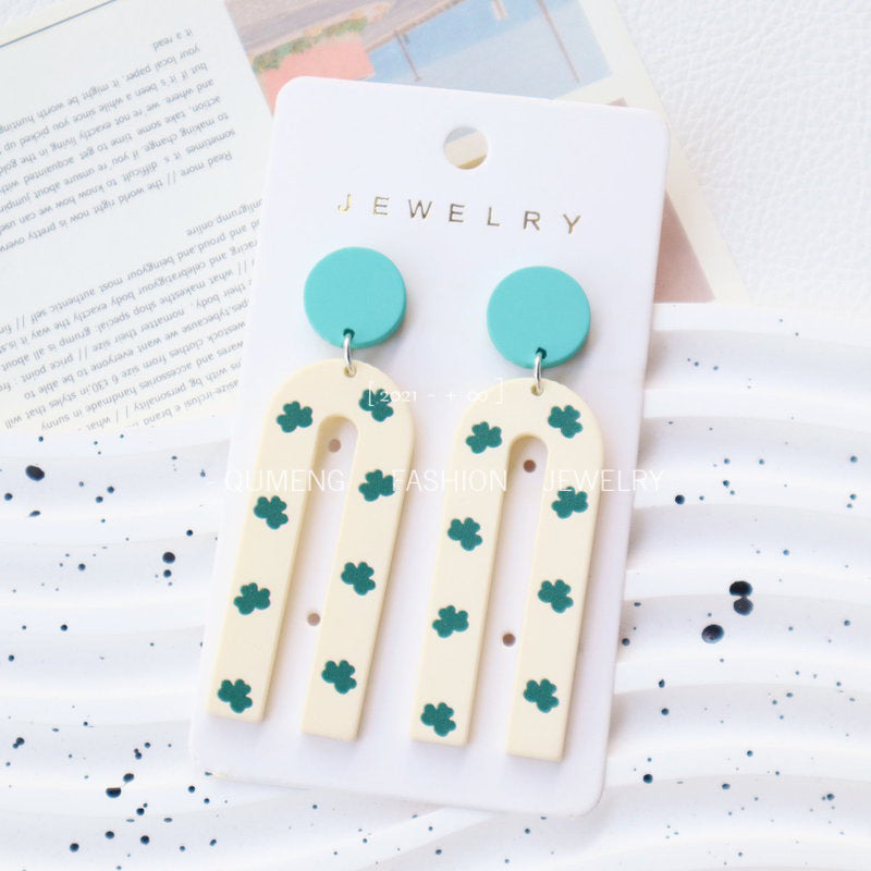 Wholesale St. Patrick's Day Acrylic Green Light Luxury Zircon Beautiful Earrings