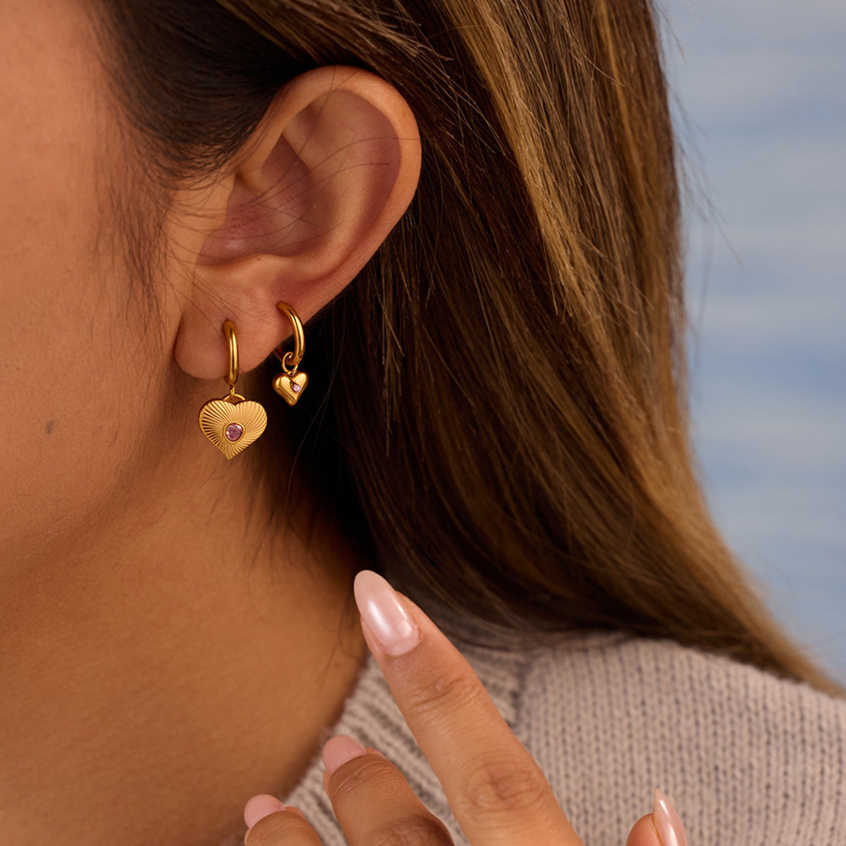 Wholesale Stainless steel heart-shaped dangle earrings