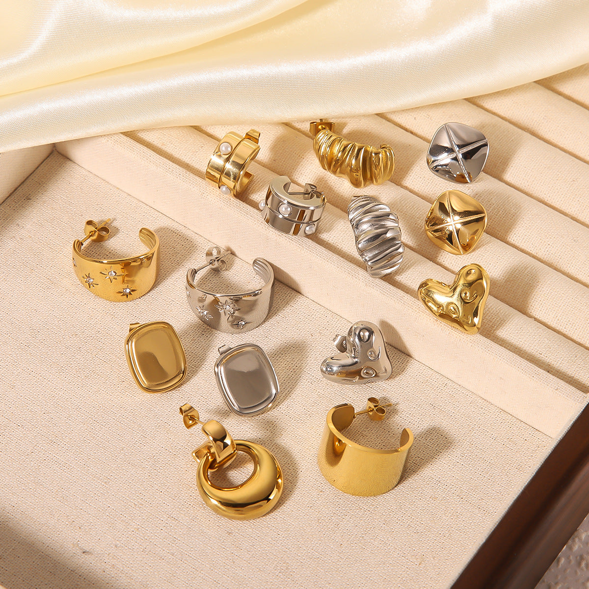 Boucles d'oreilles creuses en forme de C en gros de 18 km boucles d'oreilles géométriques rétro