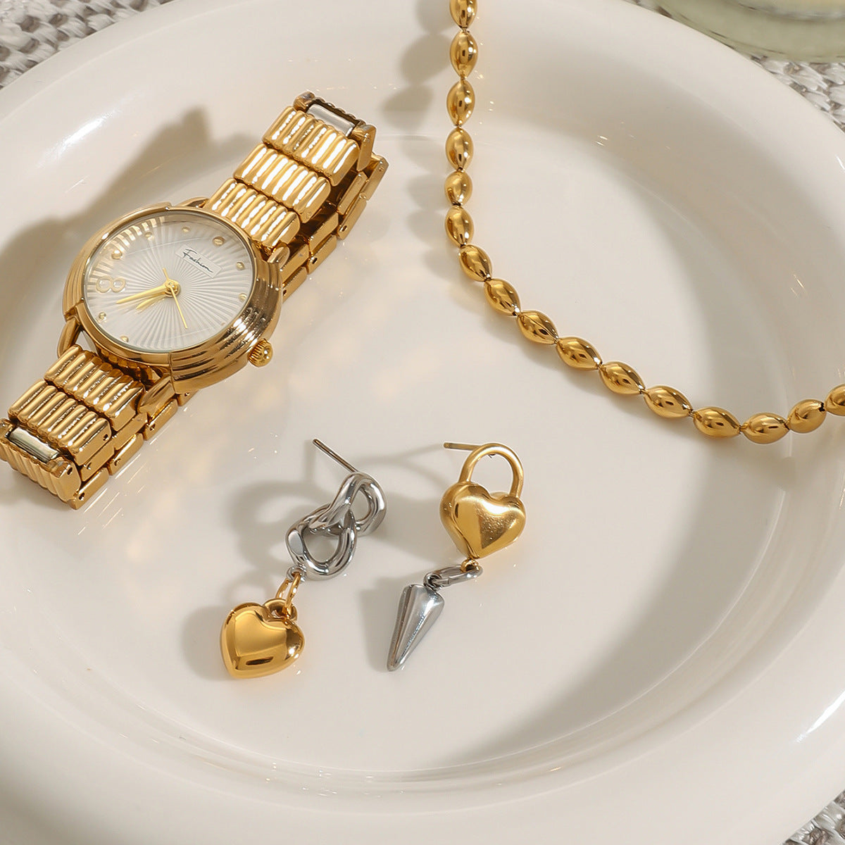 Wholesale 18k gold stainless steel gold and silver color matching love cone chain love earrings