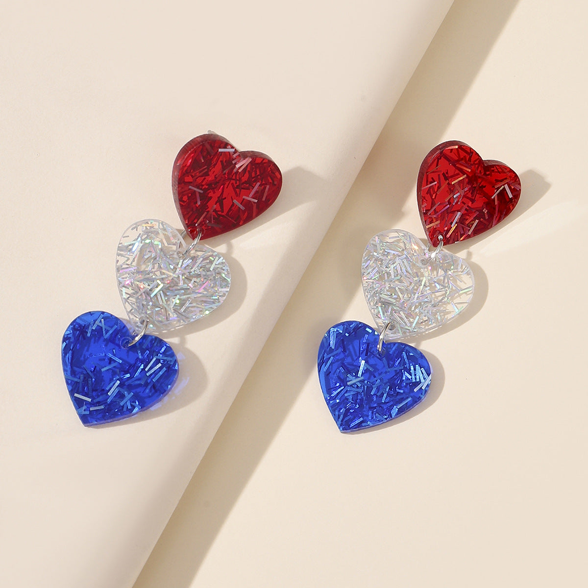 Wholesale Independence Day National Day Red, White and Blue Three-color Stars Love Glitter Acrylic Earrings