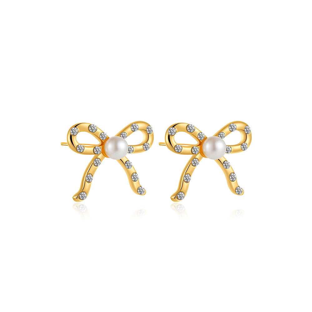 Wholesale 18K Gold Pearl Diamond Earrings Mini Bow Earrings