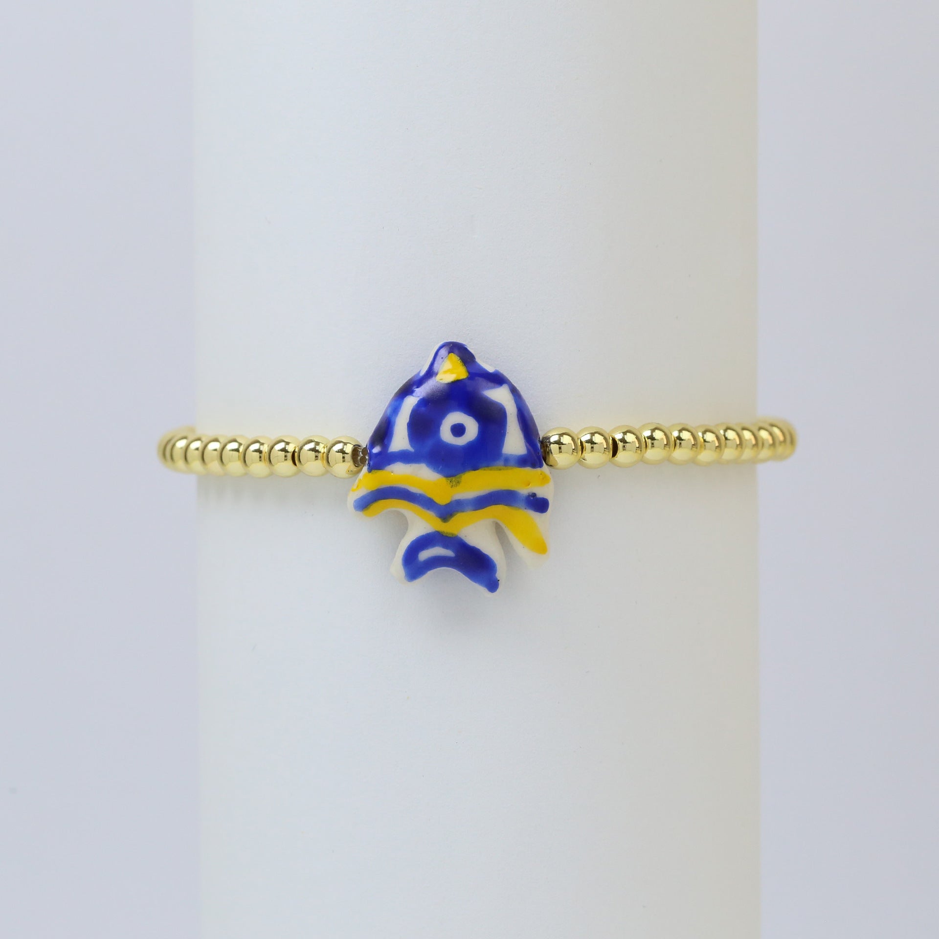 Wholesale Beach style ceramic glass colorful fish elastic rope copper bead bracelet