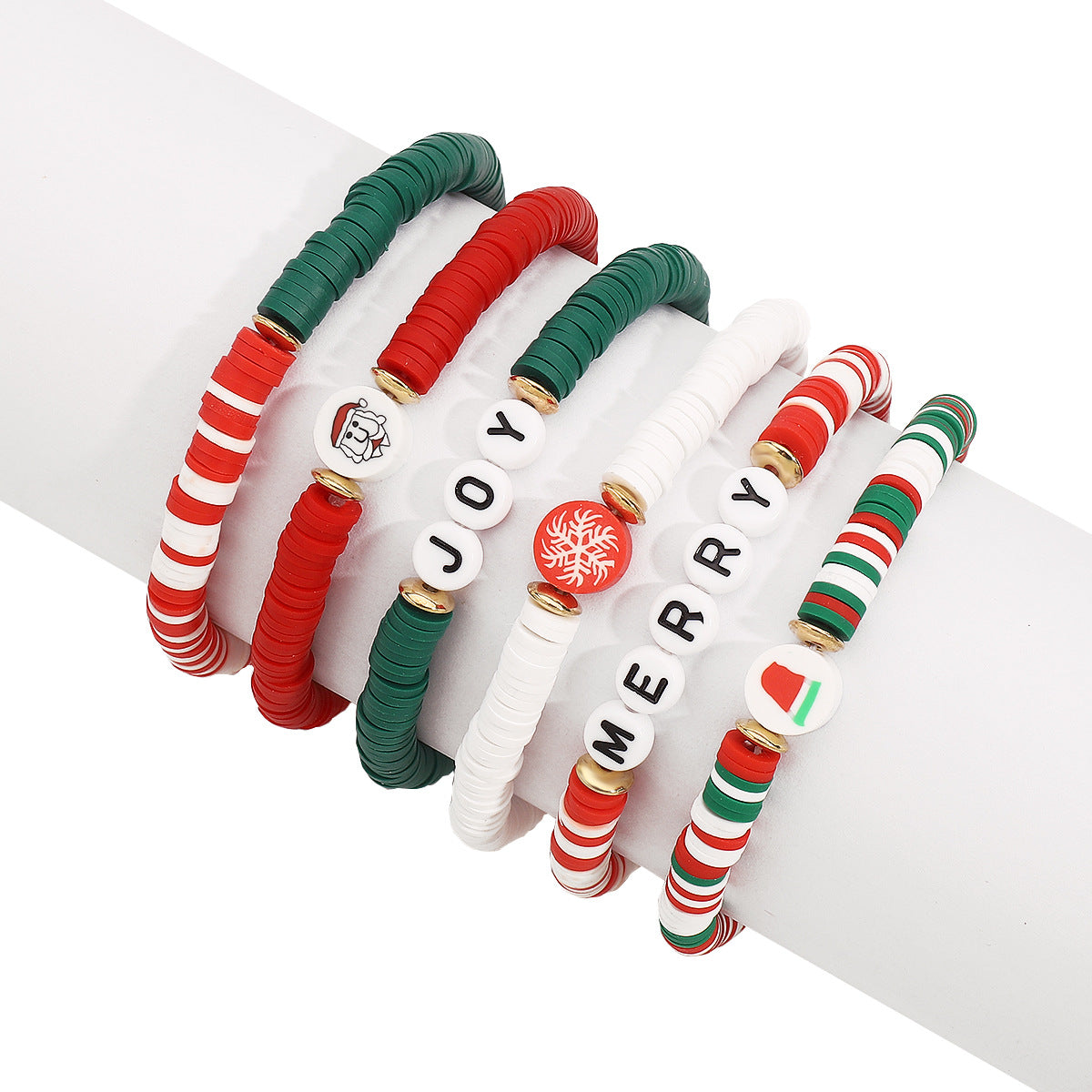 Wholesale Christmas Bracelet suit Cute Fresh Santa Snowflake Letter Soft Ceramic Bracelet