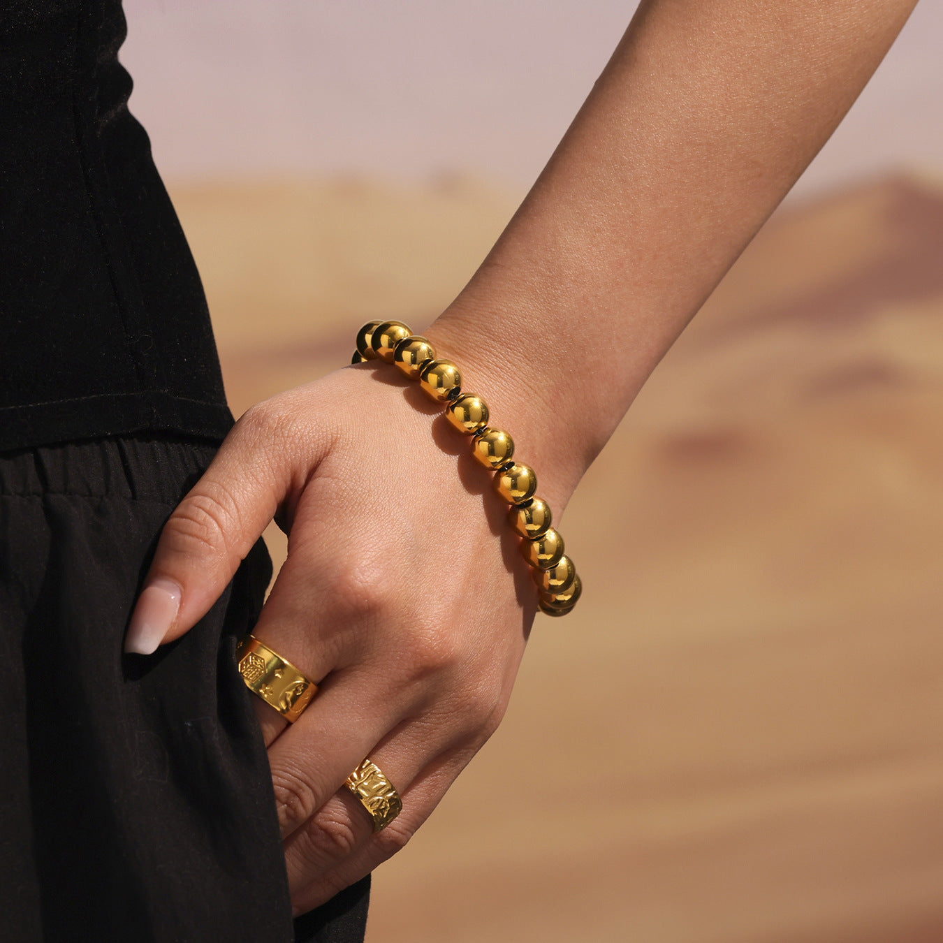 Wholesale Stainless Steel Color-Blocking Hollow Round Bead Handmade Beaded Bracelet