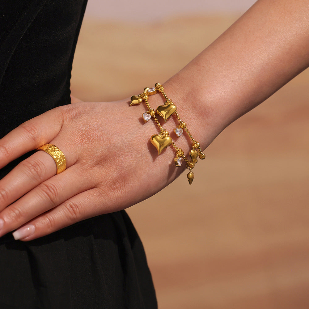 Wholesale Stainless Steel Round Bead Heart Zircon Pendant Bracelet