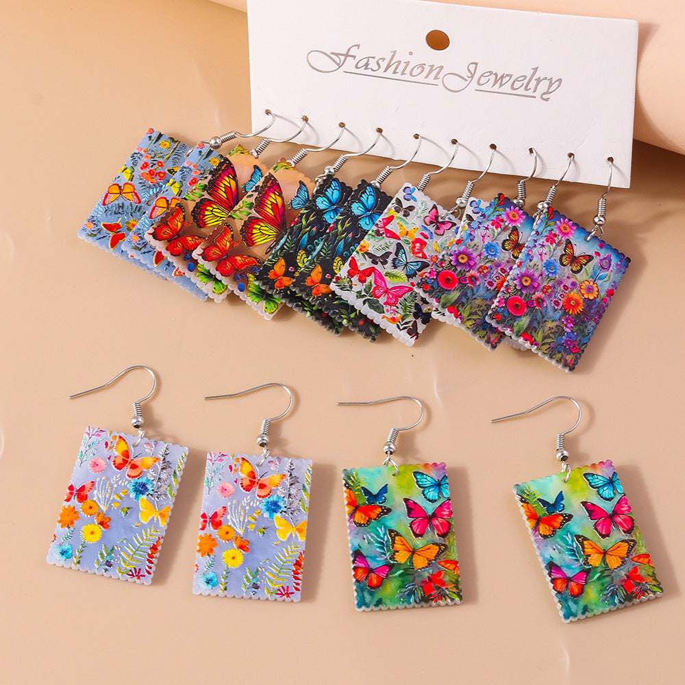 Wholesale Animal Geometric Ear Hooks and Drops Oil Painting Butterfly Earrings
