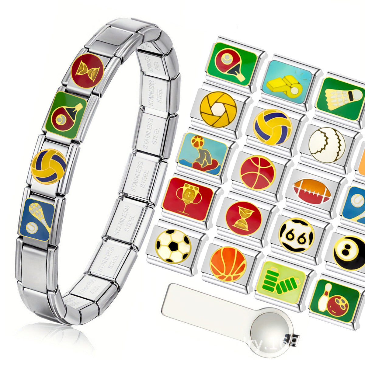 Wholesale 9mm Italian Charm Starter Bracelets DIY square Single Section Creative Stainless Steel Composable Bracelet