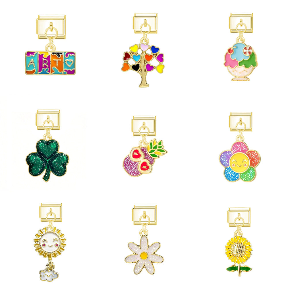 Wholesale Italian Charm Bracelet 9mm DIY Flowers and Plants Creative Stainless Steel Composable Bracelet