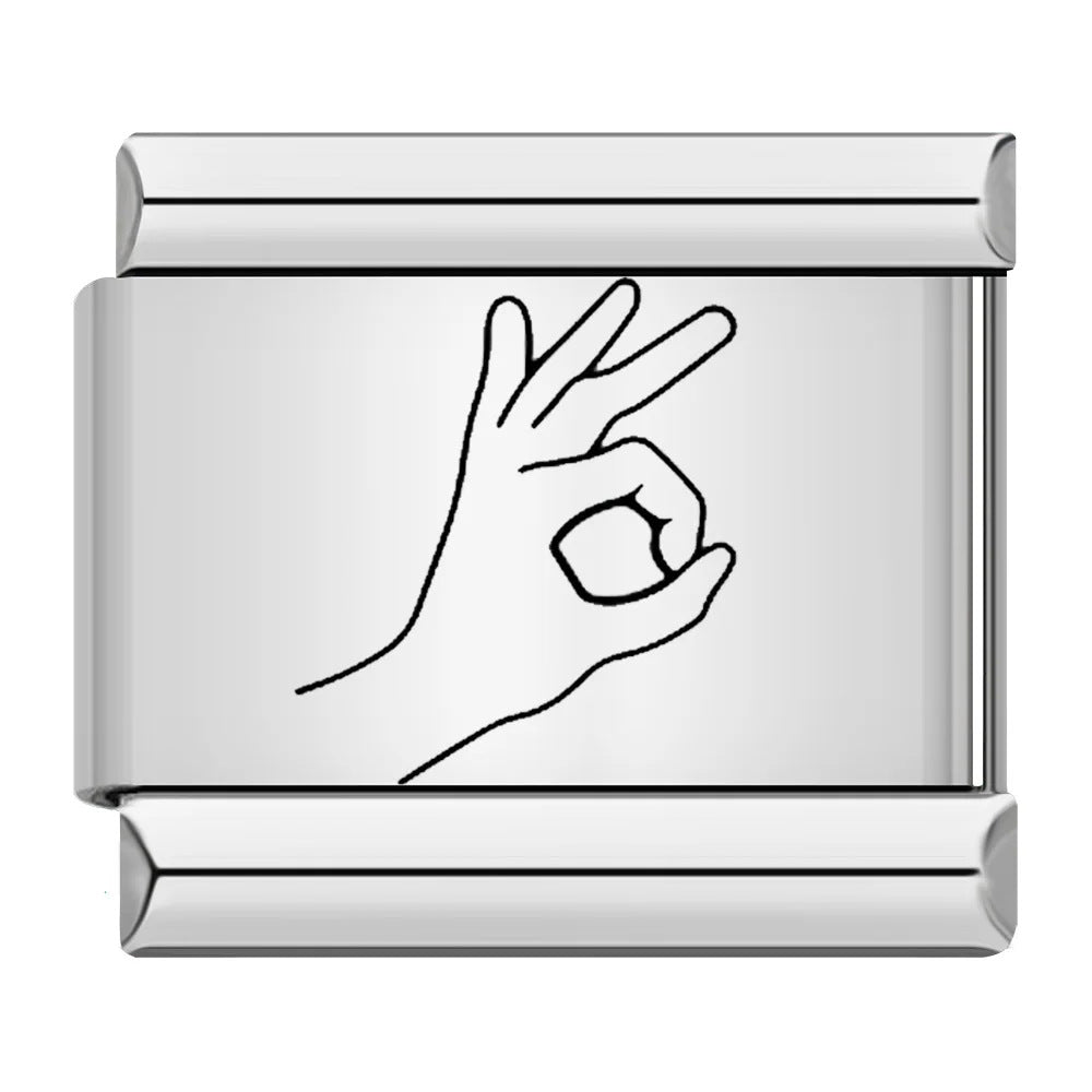 Wholesale Italian Charm Bracelet 9mm DIY Gesture Pattern Creative Stainless Steel Composable Bracelet