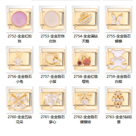 Wholesale Italian Charm Bracelet 9mm DIY Golden Zircon Animal Creative Stainless Steel Composable Bracelet